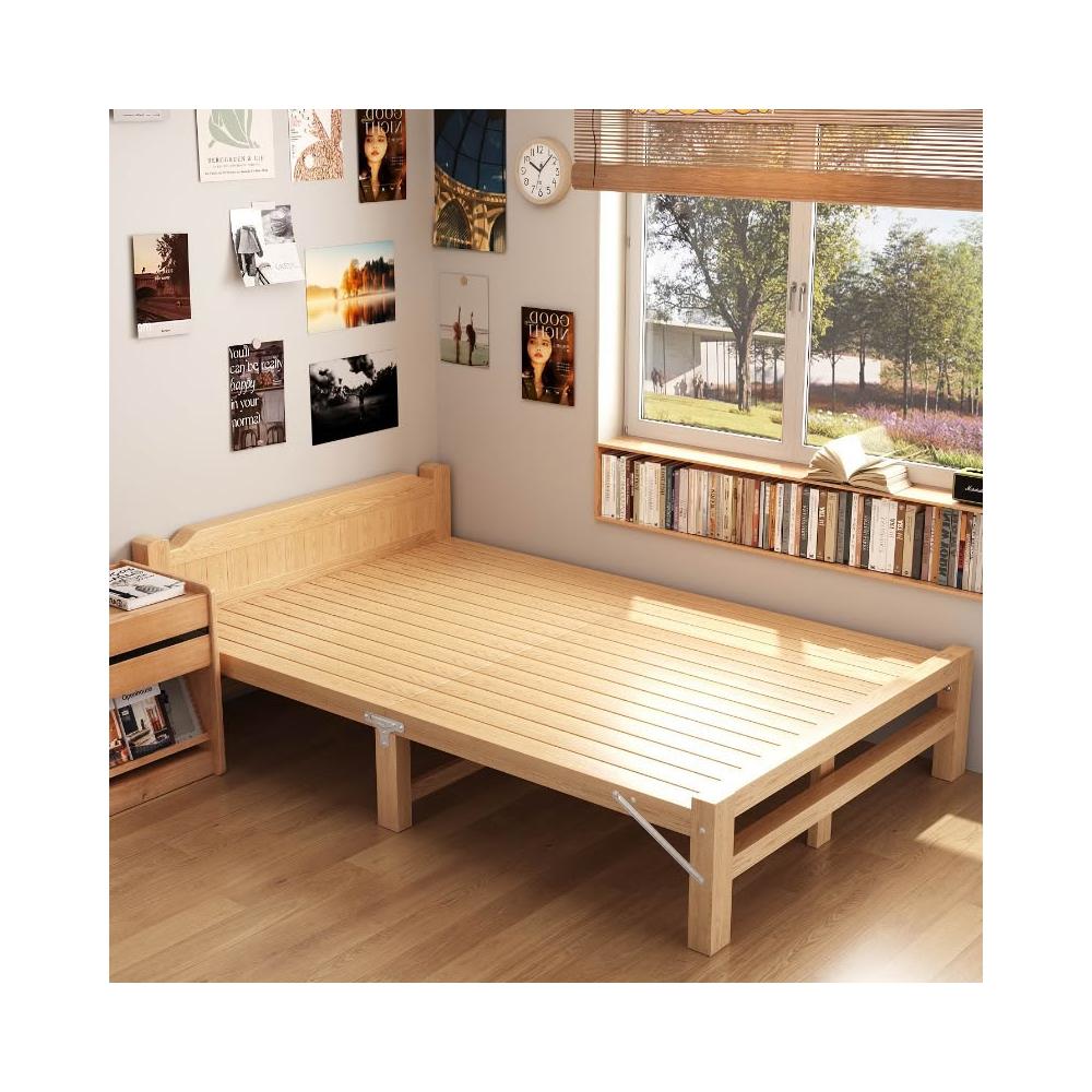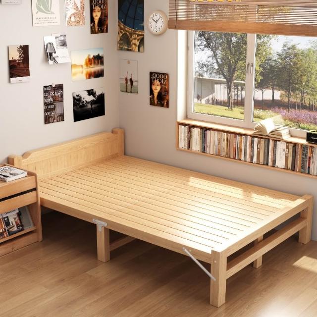 北歐實木床折疊床家用主臥單人床1米2雙人床1米5簡易加厚出租屋床