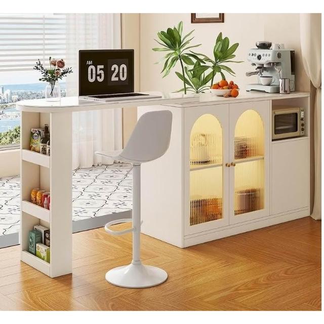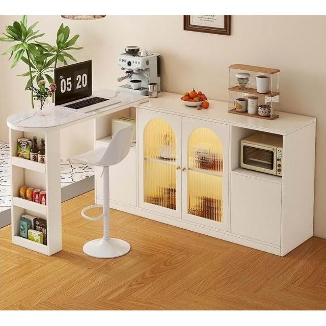 家用餐厅岩板旋转拉伸吧台桌餐桌奶油风实木餐边柜小户型餐桌吧台