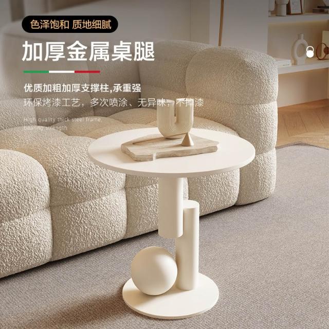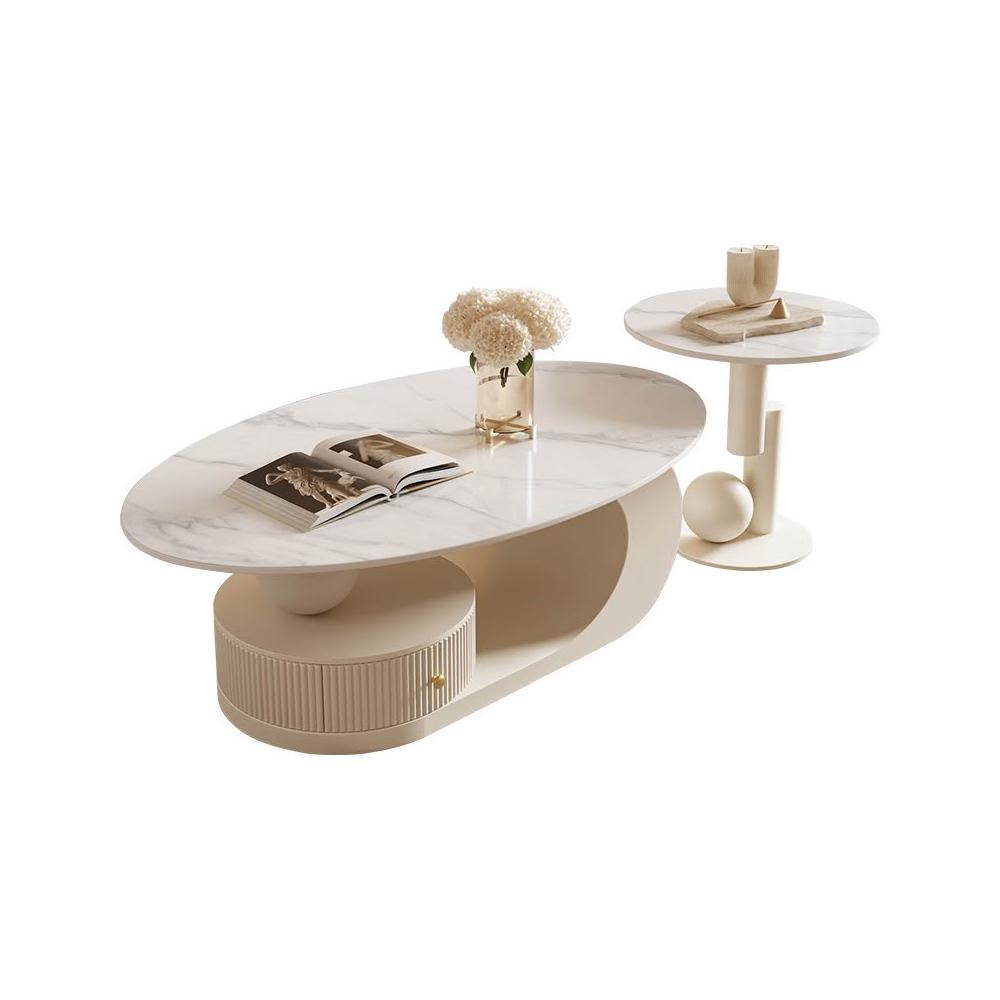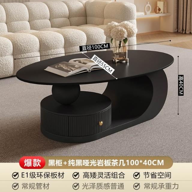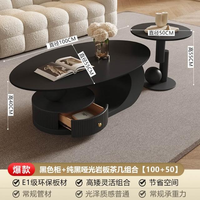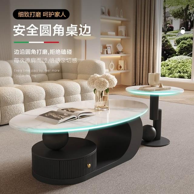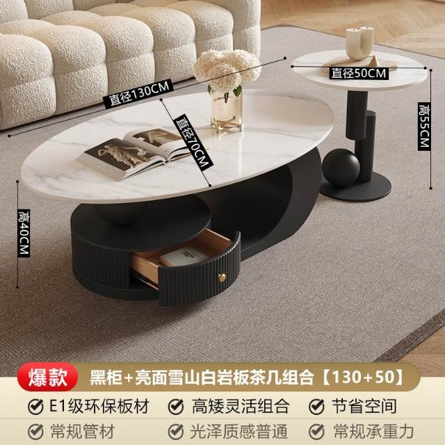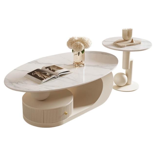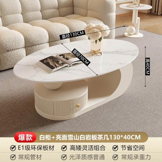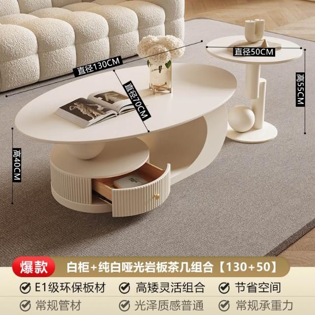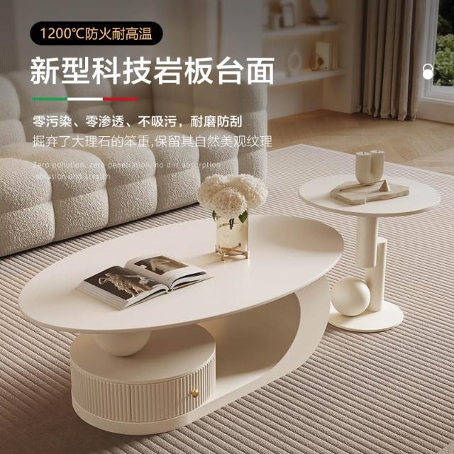 奶油風橢圓形岩板茶几組合家用小戶型大小圓桌客廳輕奢高級感茶几