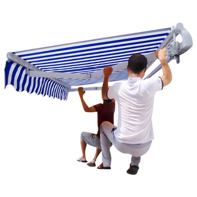 咖啡店遮陽雨蓬加厚烤漆抗風型伸縮雨棚雙柱梁加強型遮陽棚廠家