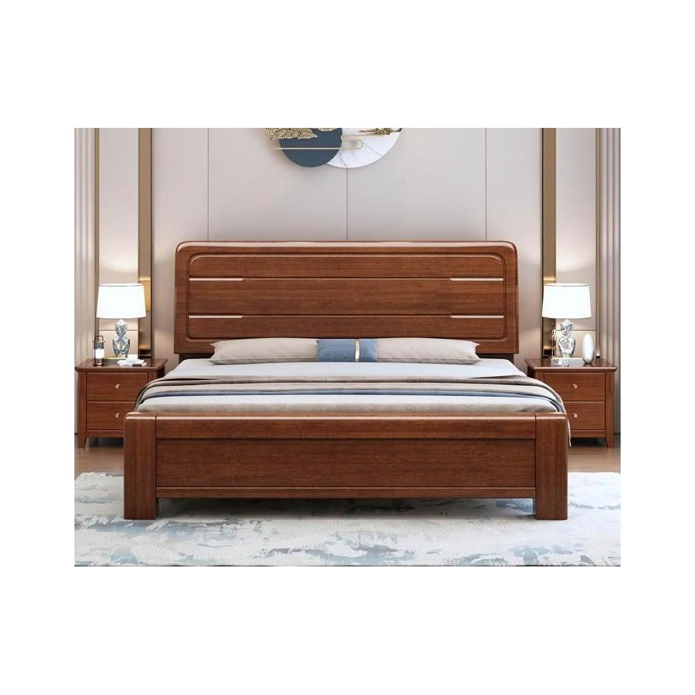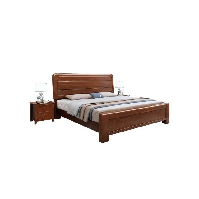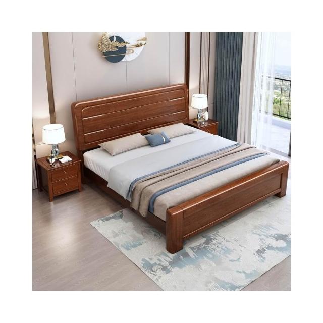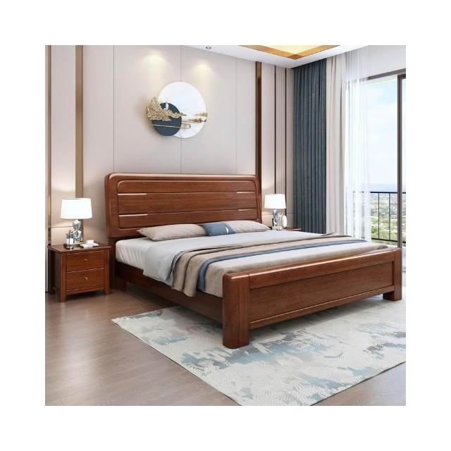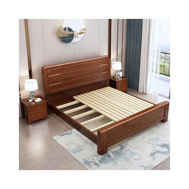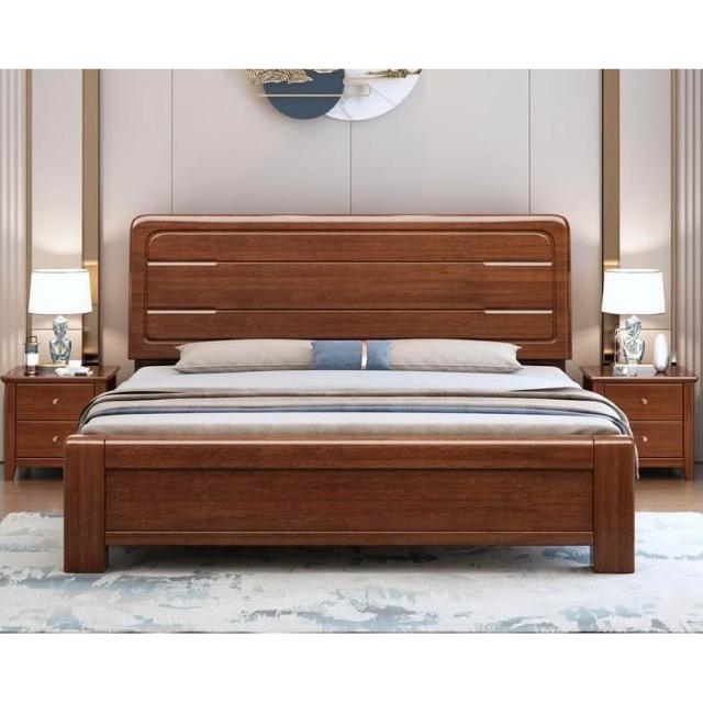 新中式風格簡約主臥大床 中小戶型臥室輕奢款1.8米床胡桃木實木床