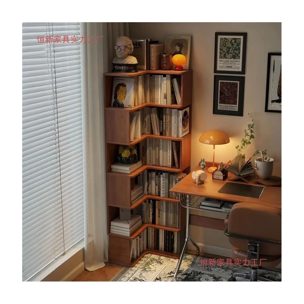 中古風轉角書架置物架窄櫃客廳書櫃落地靠牆儲物櫃一體創意轉角櫃