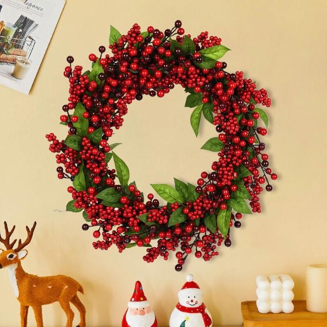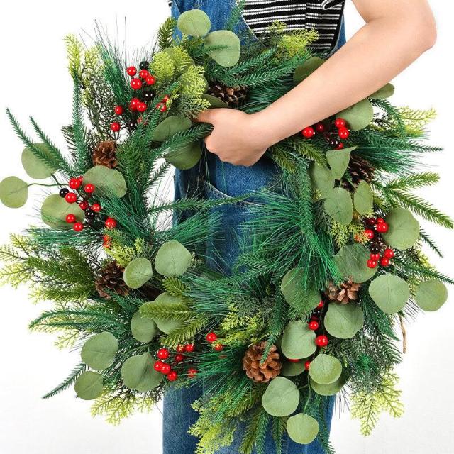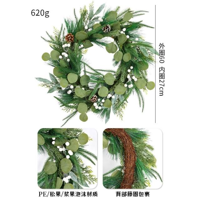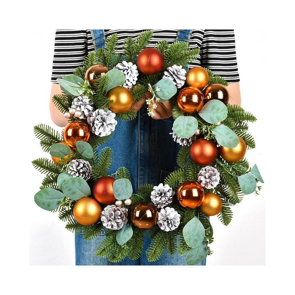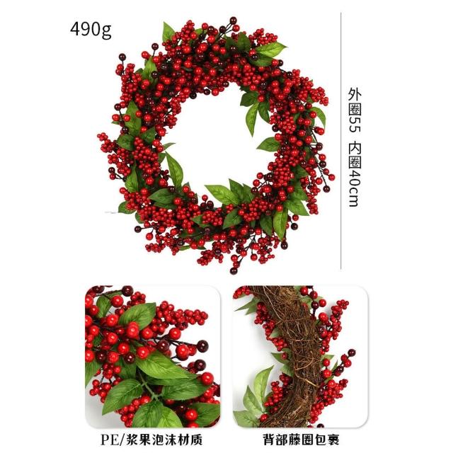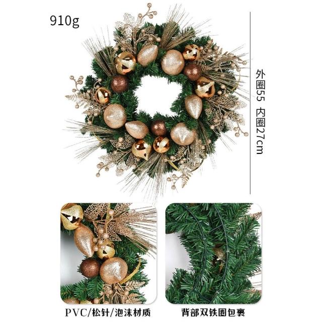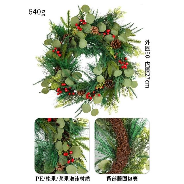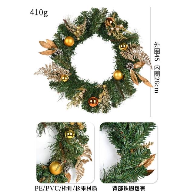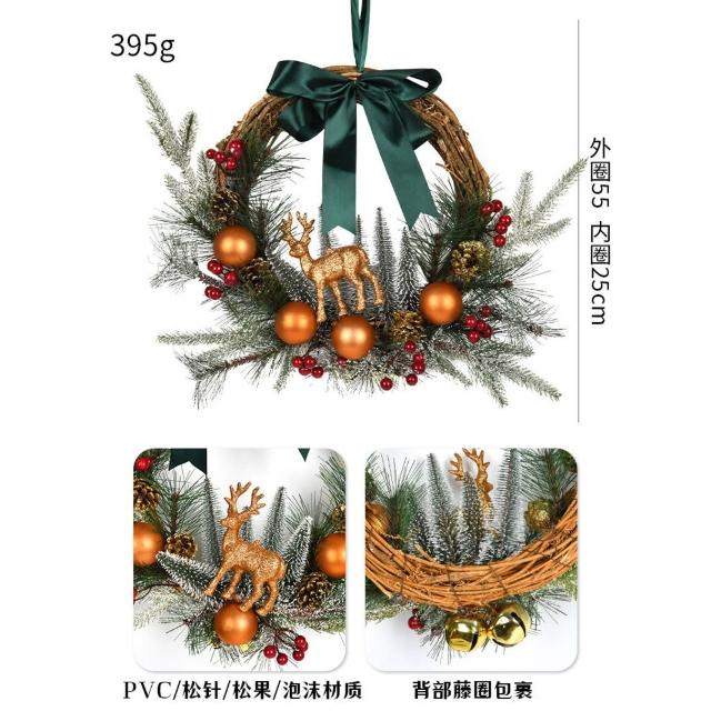 聖誕裝飾品花環門掛松果金咖球紅果藤編藤圈壁掛櫥窗掛件蝴蝶結 售後無憂