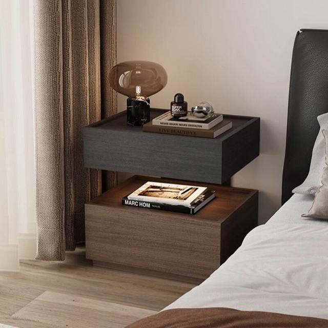 意式極簡胡桃木實木懸浮床頭櫃家用臥室小型輕奢高級感床頭收納櫃 售後無憂