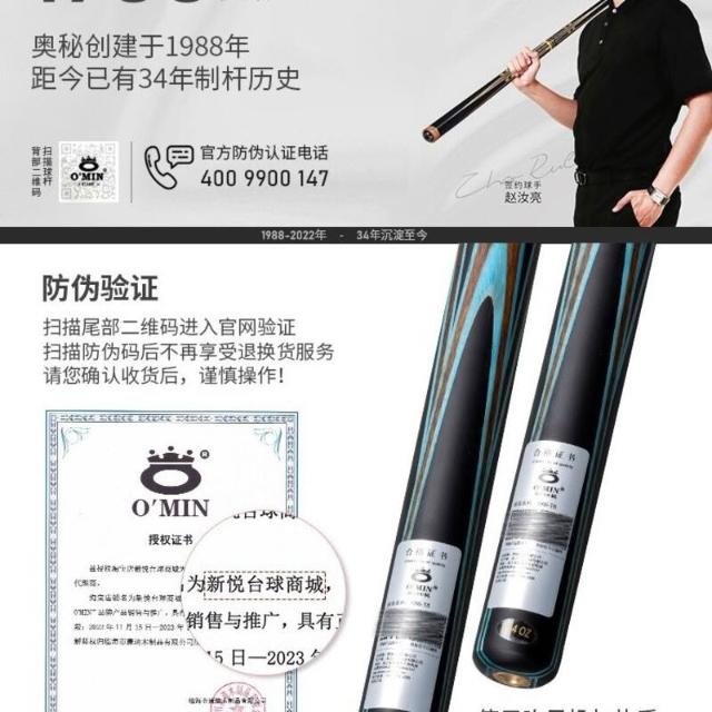 Omin奧秘青虹臺球桿小頭黑8斯諾克球桿 藍孔雀中式八球桌球桿會員 售後無憂