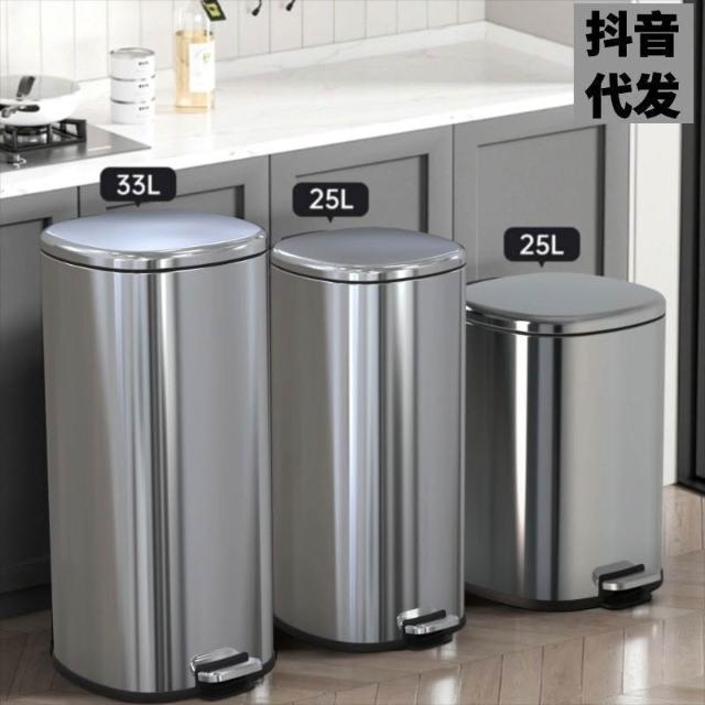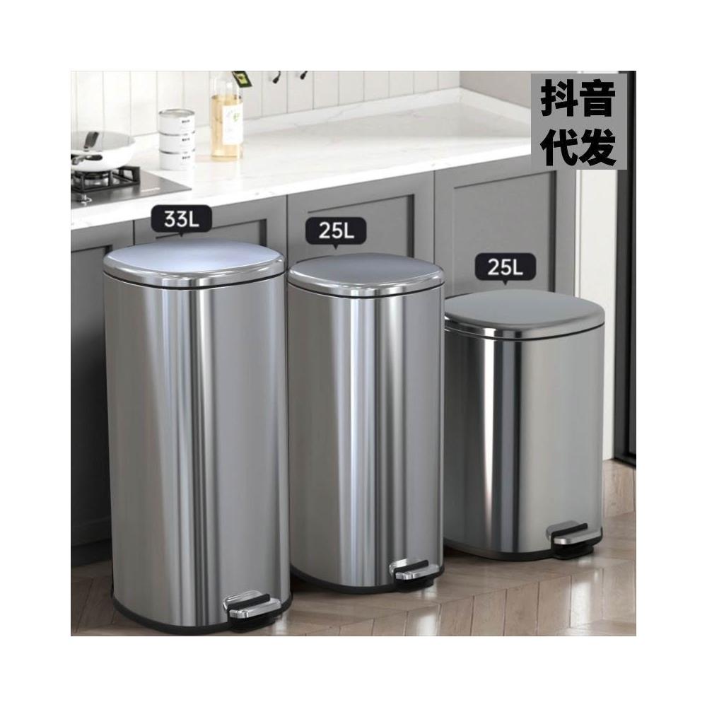 上新 抖音不銹鋼廚房垃圾桶客廳家用帶蓋子腳踏式商用大容量