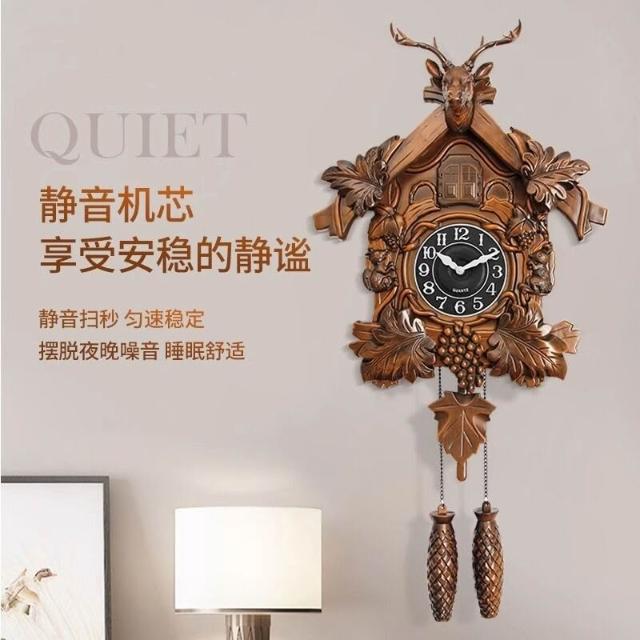 歐式鹿頭掛鐘客廳高級感裝飾鐘布谷鳥整點報時咕咕鐘家用時鐘 售後無憂