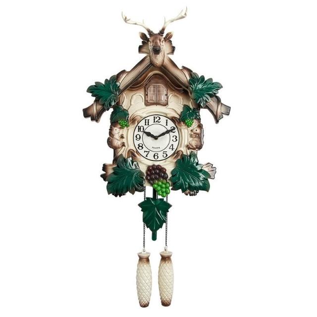 歐式鹿頭掛鐘客廳高級感裝飾鐘布谷鳥整點報時咕咕鐘家用時鐘 售後無憂