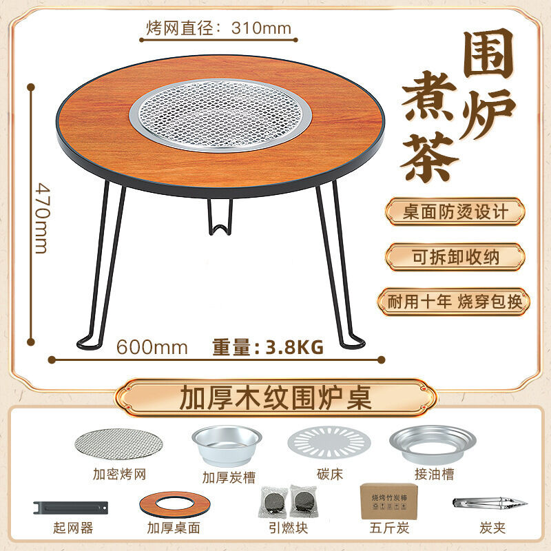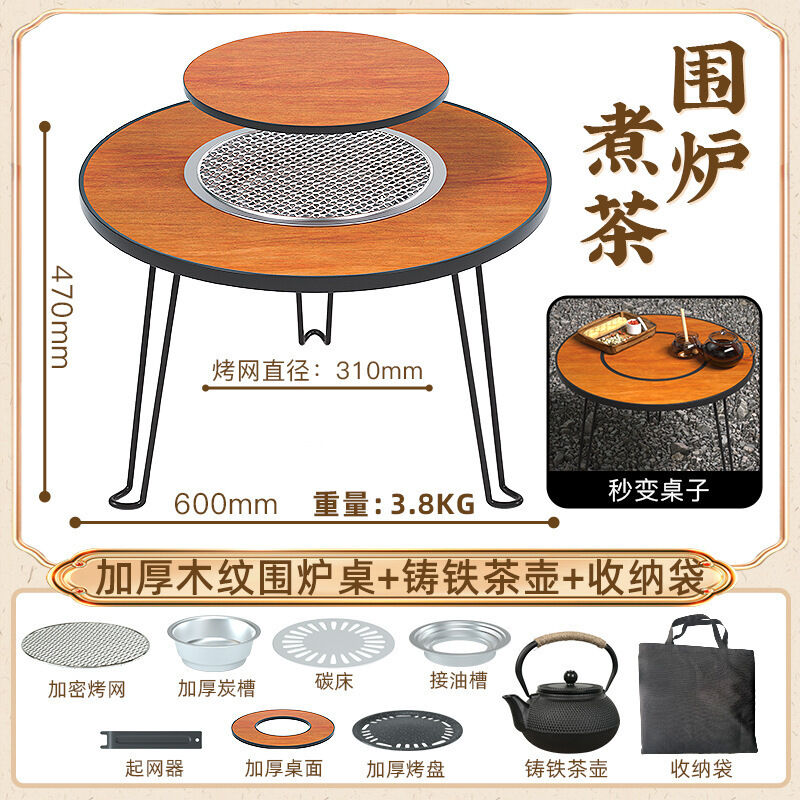 新升級 圍爐煮茶 烤肉 燒火爐套裝 家用室內 碳炭爐戶外 2025新款冬天取暖 烤肉桌子