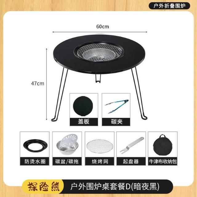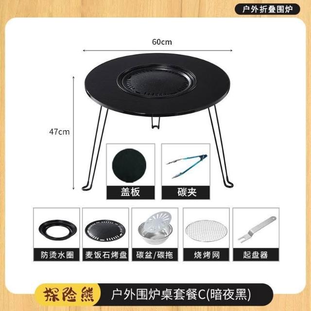 圍爐煮茶折疊圓桌戶外野炊露營燒烤烤肉桌庭院烤火室內取暖爐家用