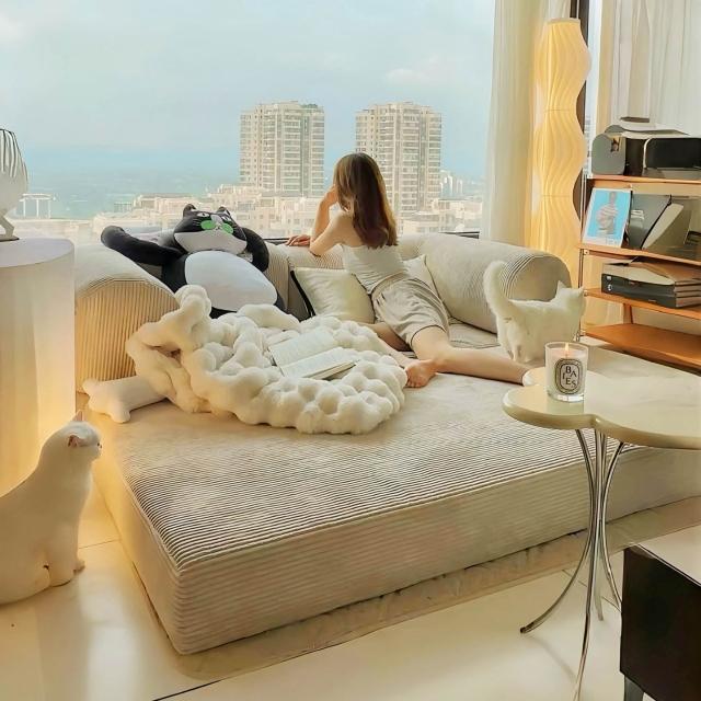 升級加厚 跨境沙發布藝壓縮沙發床小戶型客廳臥室可折疊拆洗雙三人兩用模塊
