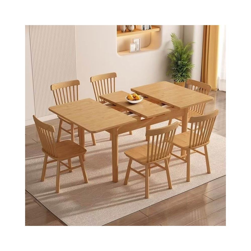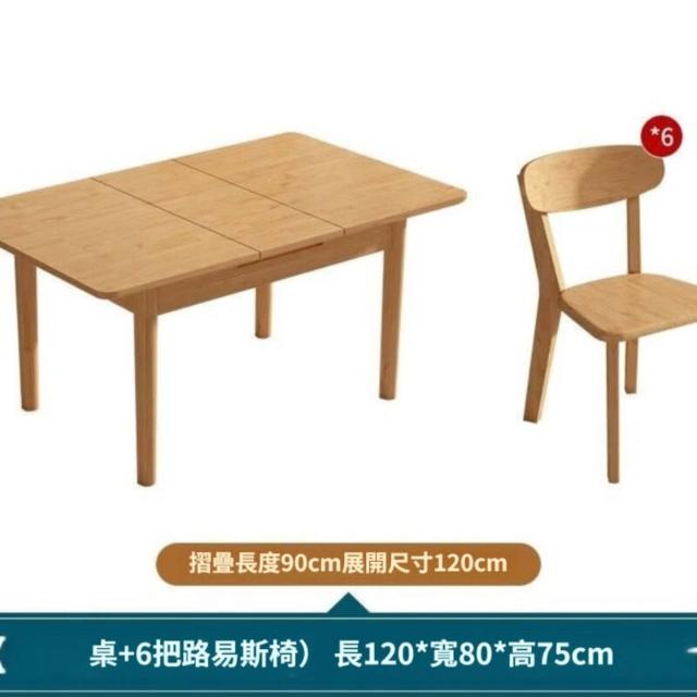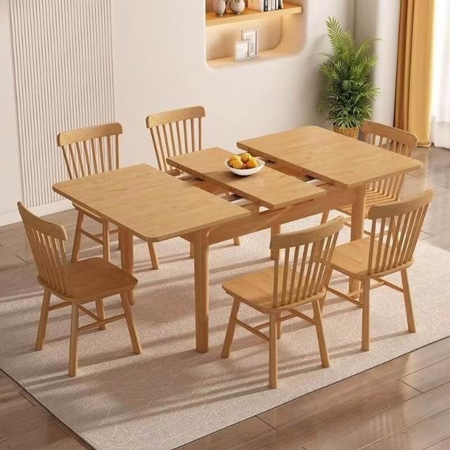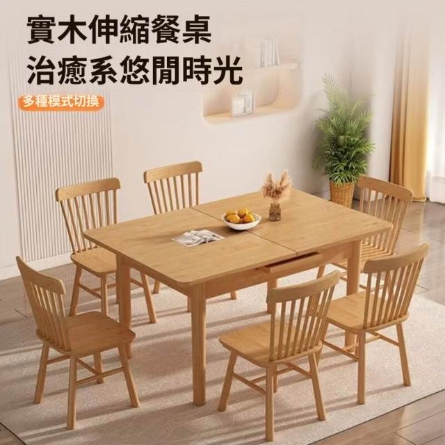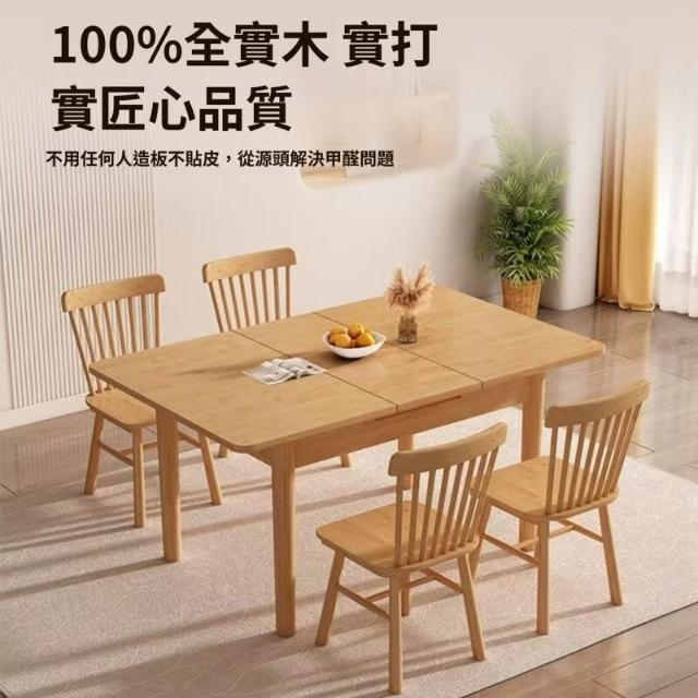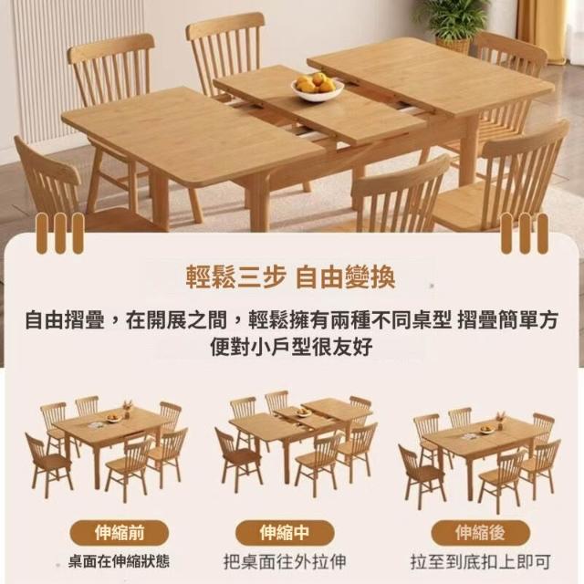 全實木折疊餐桌 小戶型 抽拉桌 升降桌 長方形 北歐現代簡約 可伸縮原木飯桌 餐桌 伸縮餐桌 01e