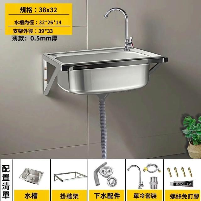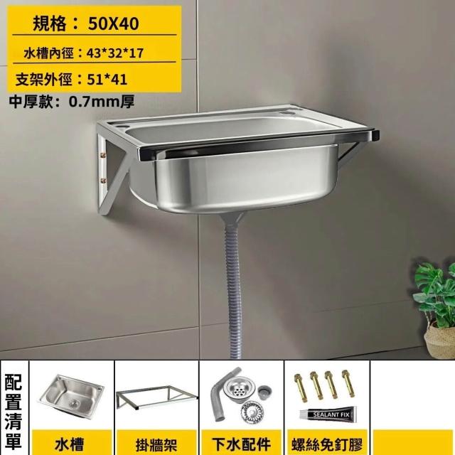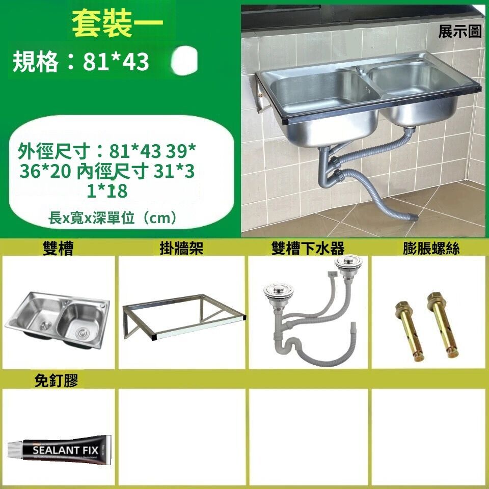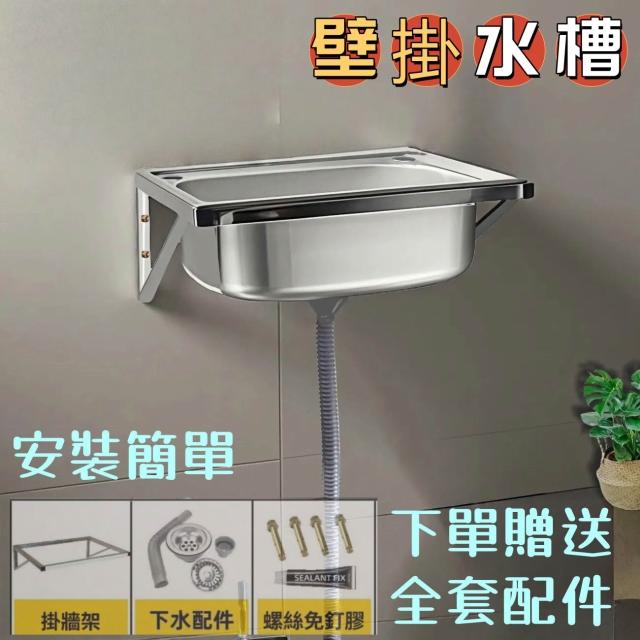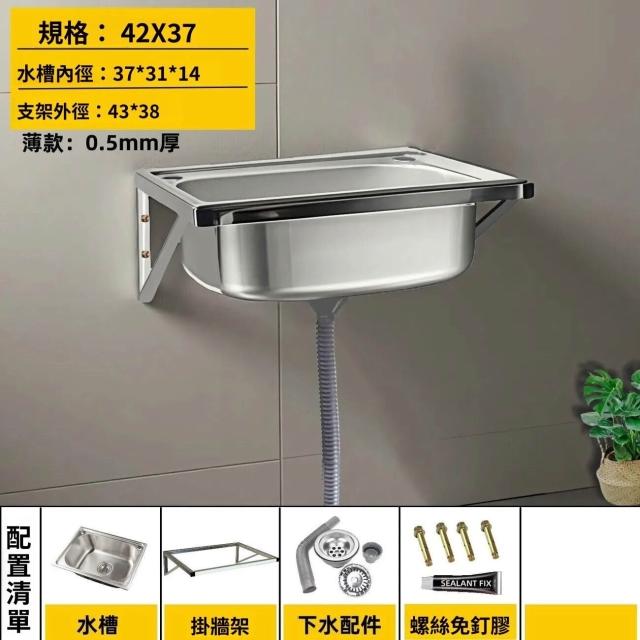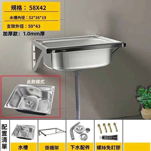 不銹鋼壁掛式水槽 帶支架洗菜盆 掛墻上架子 雙槽 單槽水洗碗盆洗手池 戶外水槽 陽台家用 9ce