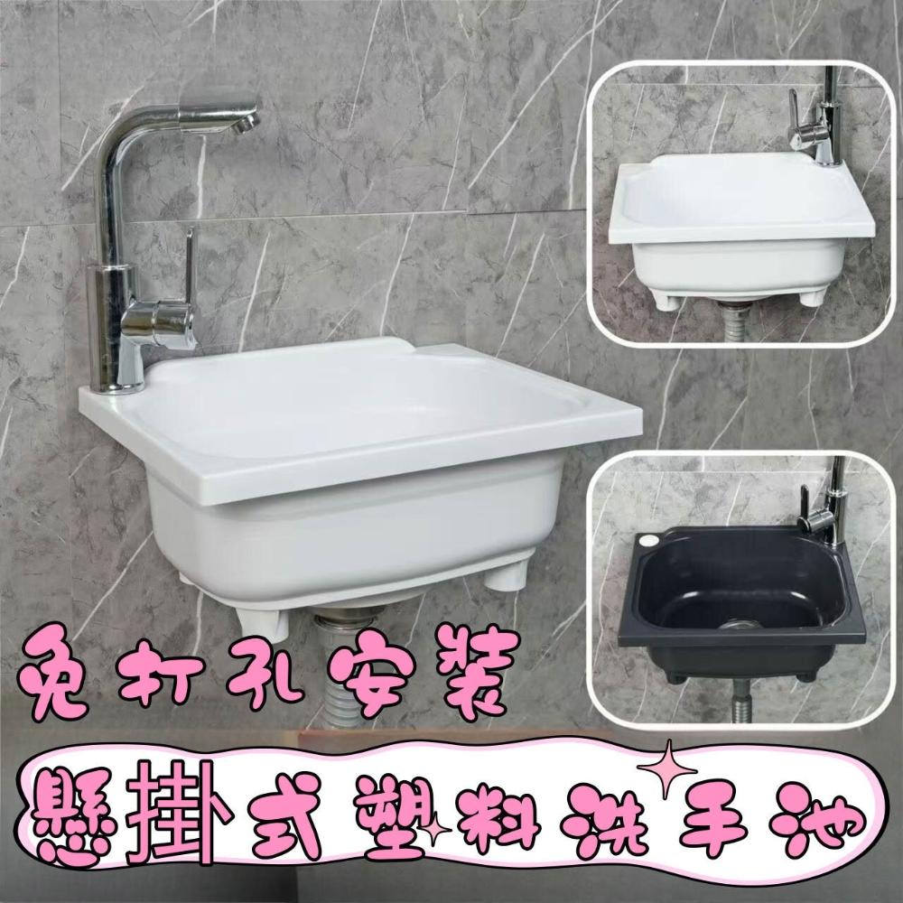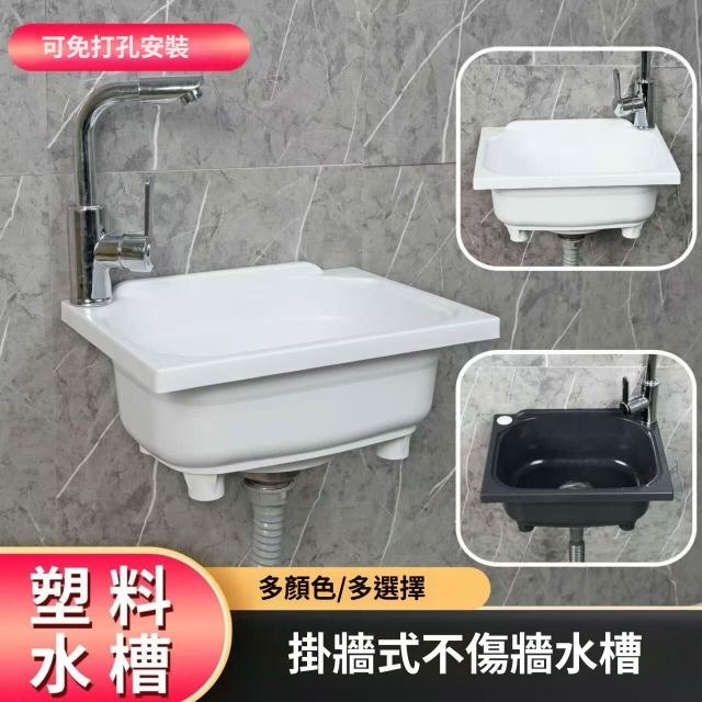 廚房塑料水槽 單槽 免打孔掛墻式洗菜盆 洗碗池 洗手盆 洗臉盆 家用 戶外水盆 陽台水池aaf
