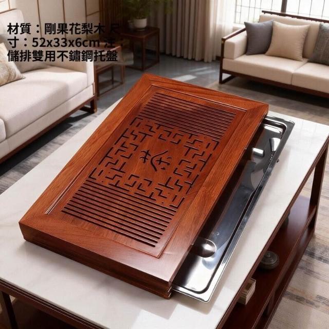 雞翅木花梨實木大號茶盤 抽屜式茶托 儲水排水家用托盤 功夫茶具 茶臺 cdb