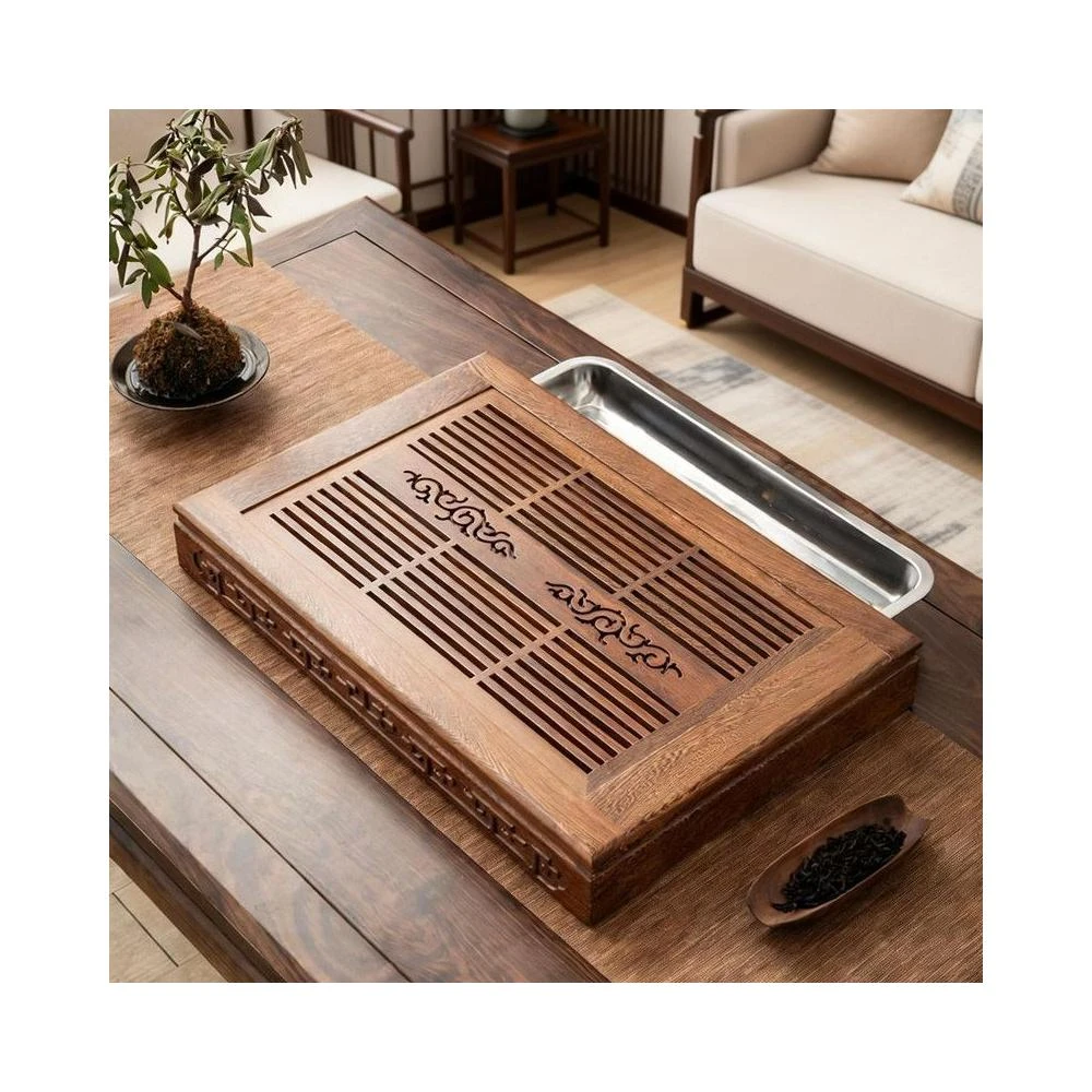 雞翅木花梨實木大號茶盤 抽屜式茶托 儲水排水家用托盤 功夫茶具 茶臺 cdb