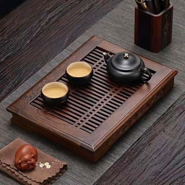 雞翅木茶盤 家用儲水式功夫茶具 實木抽屜 瀝水排水茶海茶托盤 茶臺 3bb