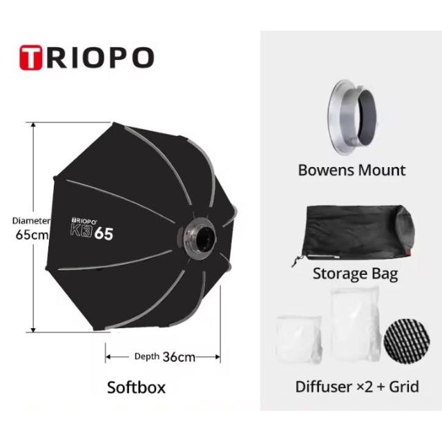 捷寶附網格+柔光布 Triopo K3-55 K3-65 K3-90 快摺傘式八角柔光罩 3代 55cm 65cm 90cm