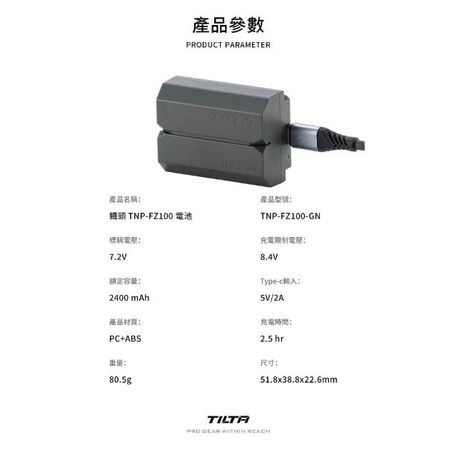 TILTA 鐵頭NP-FZ100 電池 TNP-FZ100-GN 支援 Type-C 快速充電 非SONY原廠