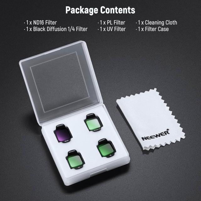 NEEWER 紐爾 DJI Flip 四件濾鏡組 FL-N36 (1/4黑柔焦+UV+PL偏光鏡+ND16)