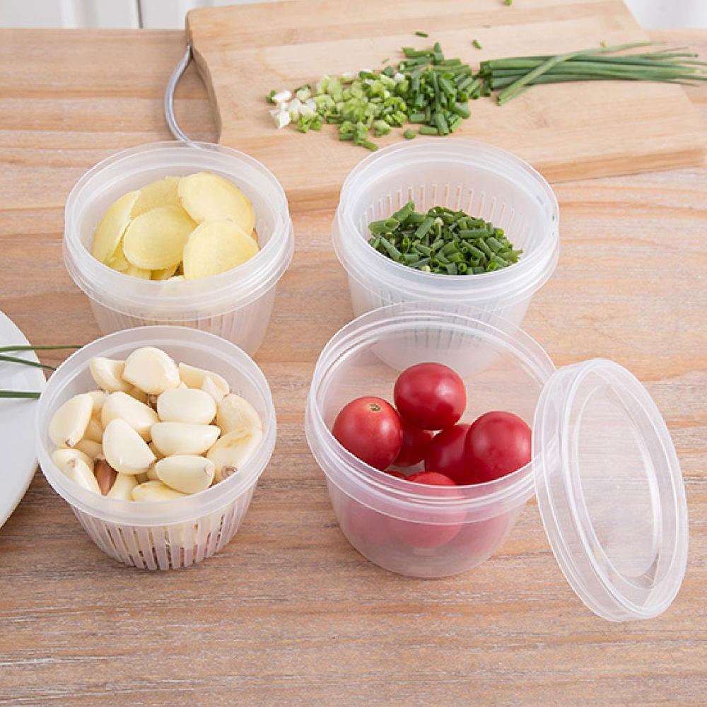 小倆口蔥花保鮮盒 蔥薑蒜小物保鮮盒 圓形 瀝水 保鮮盒 雙層 佐料 蔥花 保鮮 密封盒 收納盒 食物盒 水果保鮮盒 蔥花盒