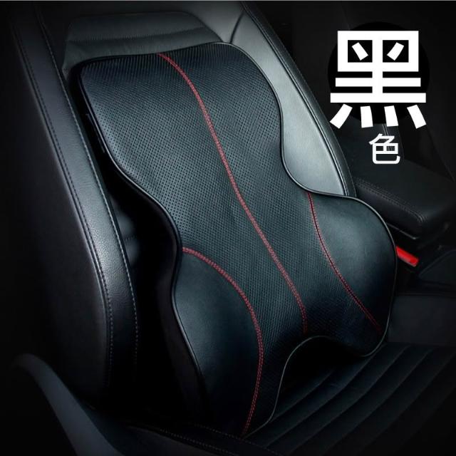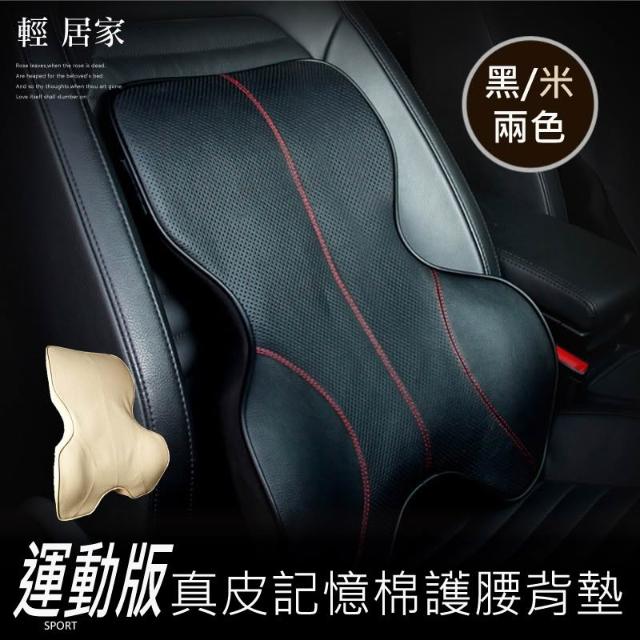 運動版真皮記憶棉護腰背墊 台灣出貨 開立發票 真皮汽車背墊 人體工學設計透氣 腰靠紓壓腰墊 護腰墊-輕居家7012