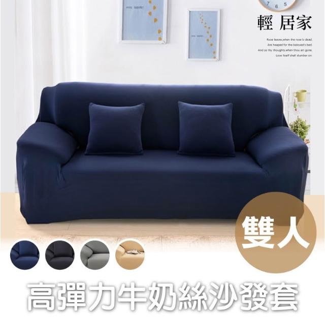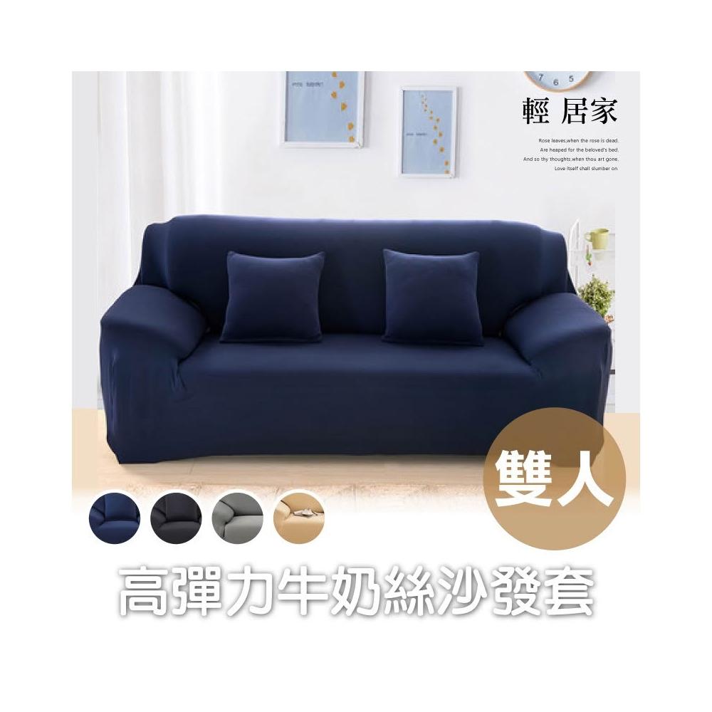 高彈力牛奶絲沙發套-雙人 台灣出貨 開立發票 簡約素色彈性沙發罩 彈力通用沙發套罩 全包防滑沙發套-輕居家8392