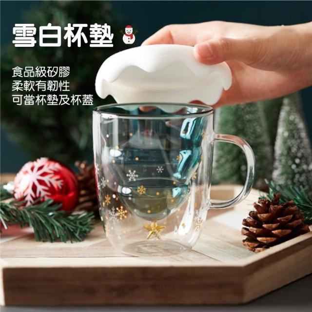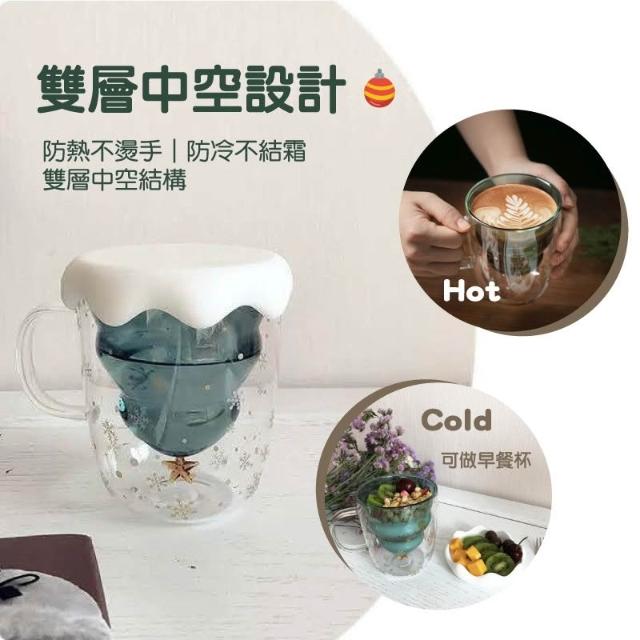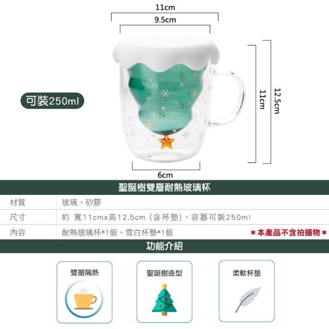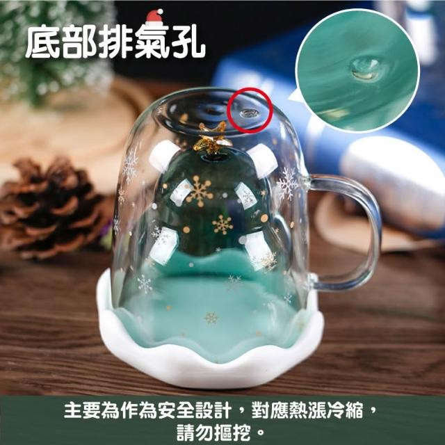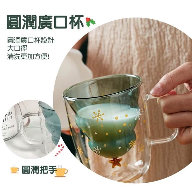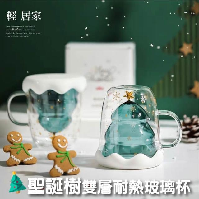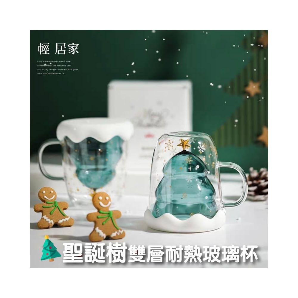 聖誕樹雙層耐熱玻璃杯 台灣出貨 開立發票 聖誕禮物 交換禮物 雙層玻璃杯 馬克杯 星願杯-輕居家8482