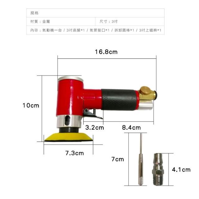 專業汽車美容3吋偏心氣動打蠟機/贈3吋上蠟棉 台灣出貨 開立發票 打腊機 輕巧型 拋光機 汽車上蠟機-輕居家0736