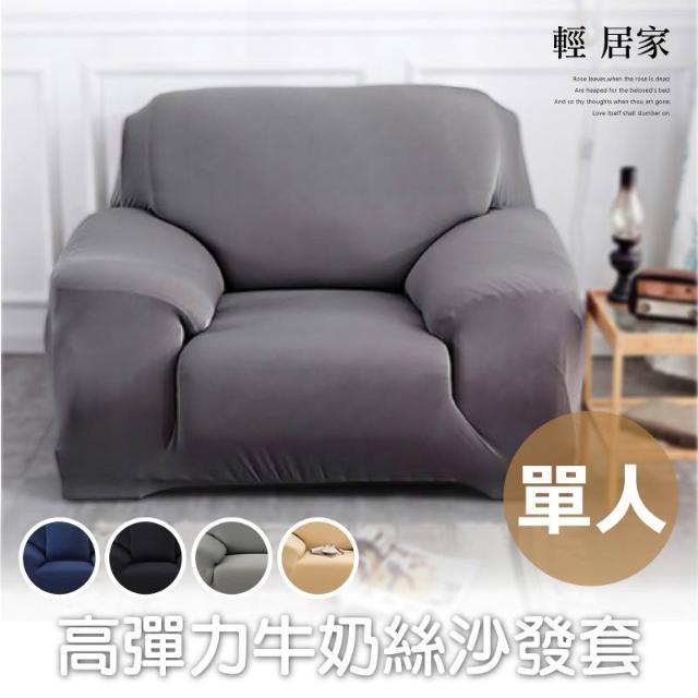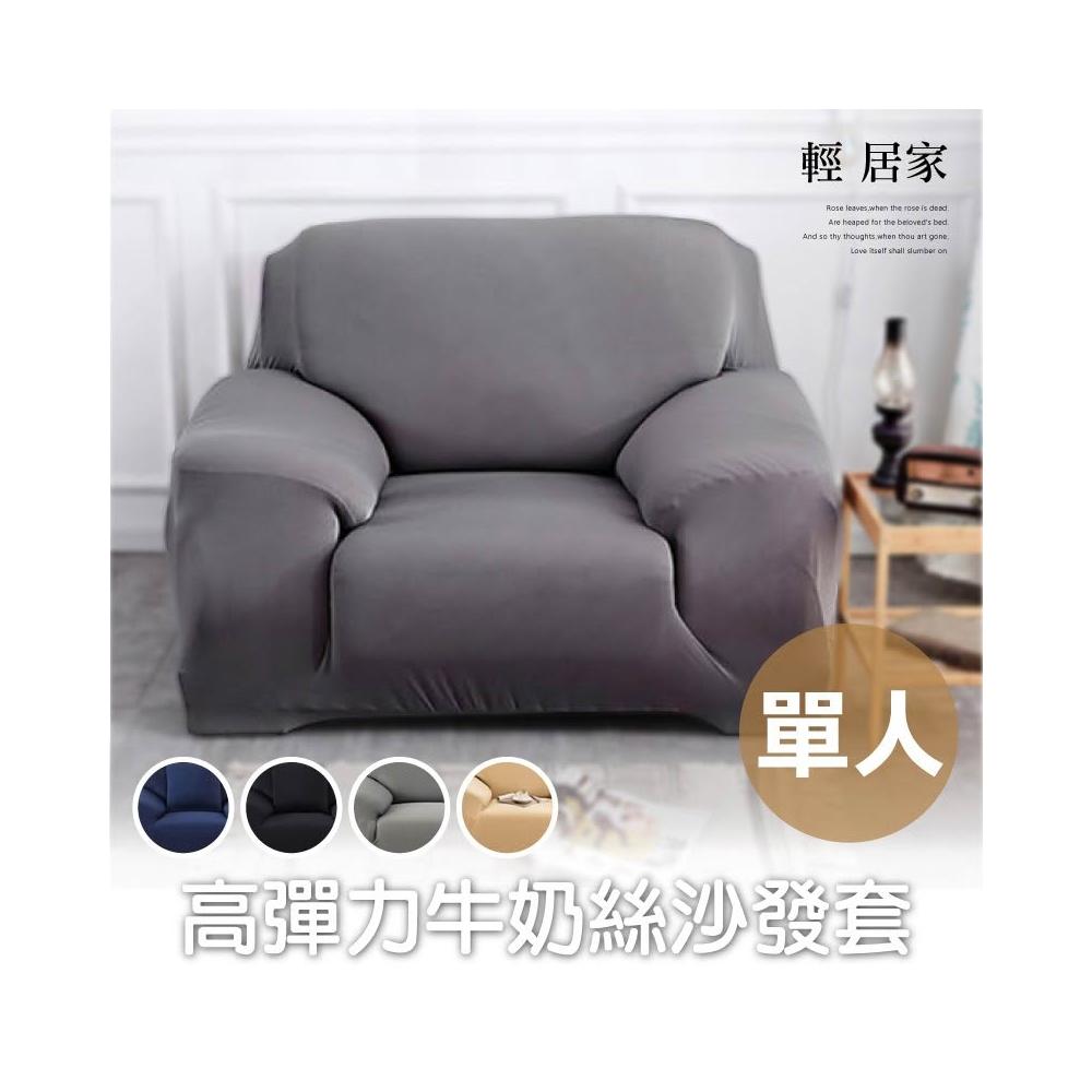 高彈力牛奶絲沙發套-單人 台灣出貨 開立發票 簡約素色彈性沙發罩 彈力通用沙發套罩 全包防滑沙發套-輕居家8391