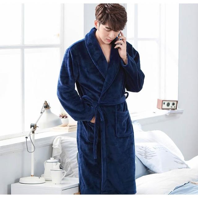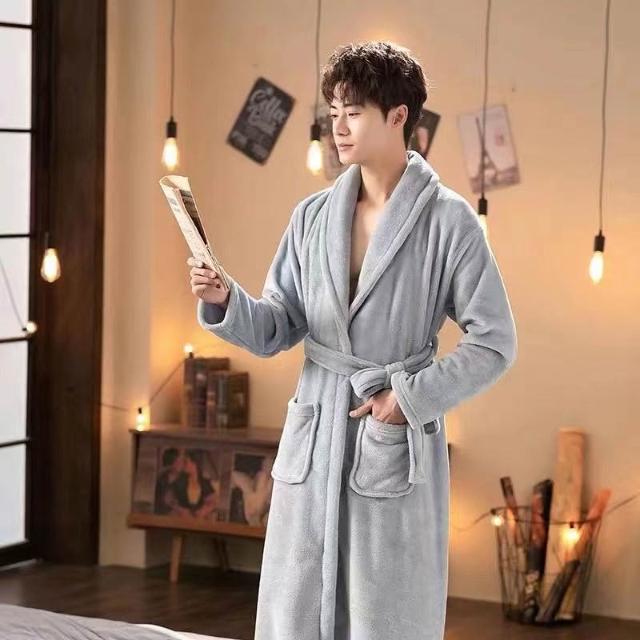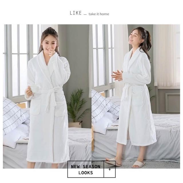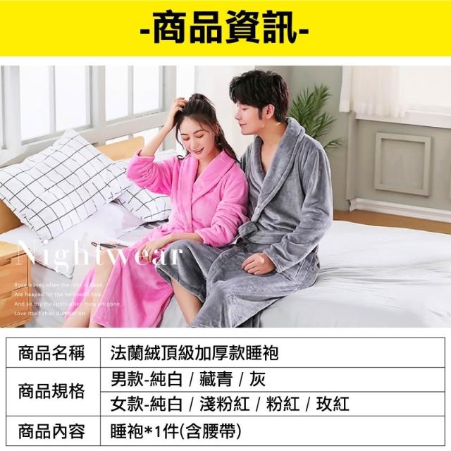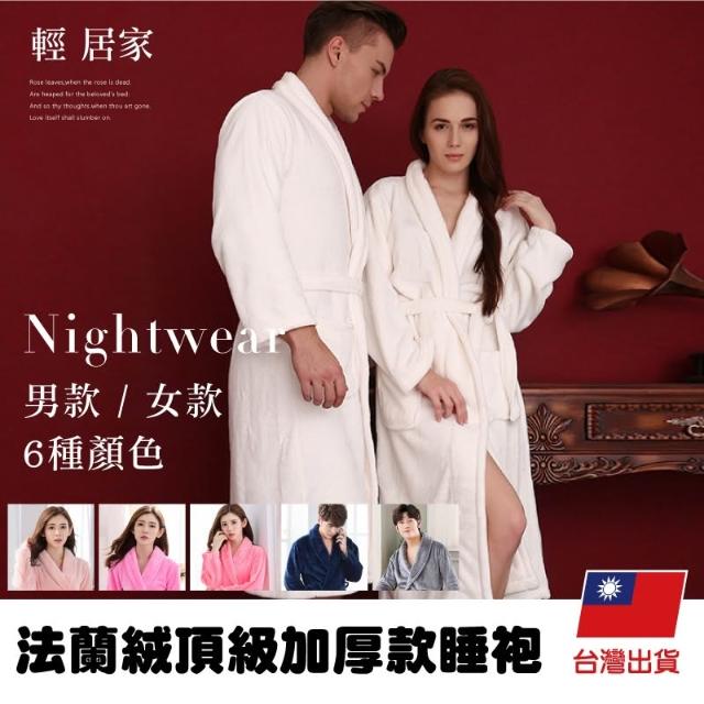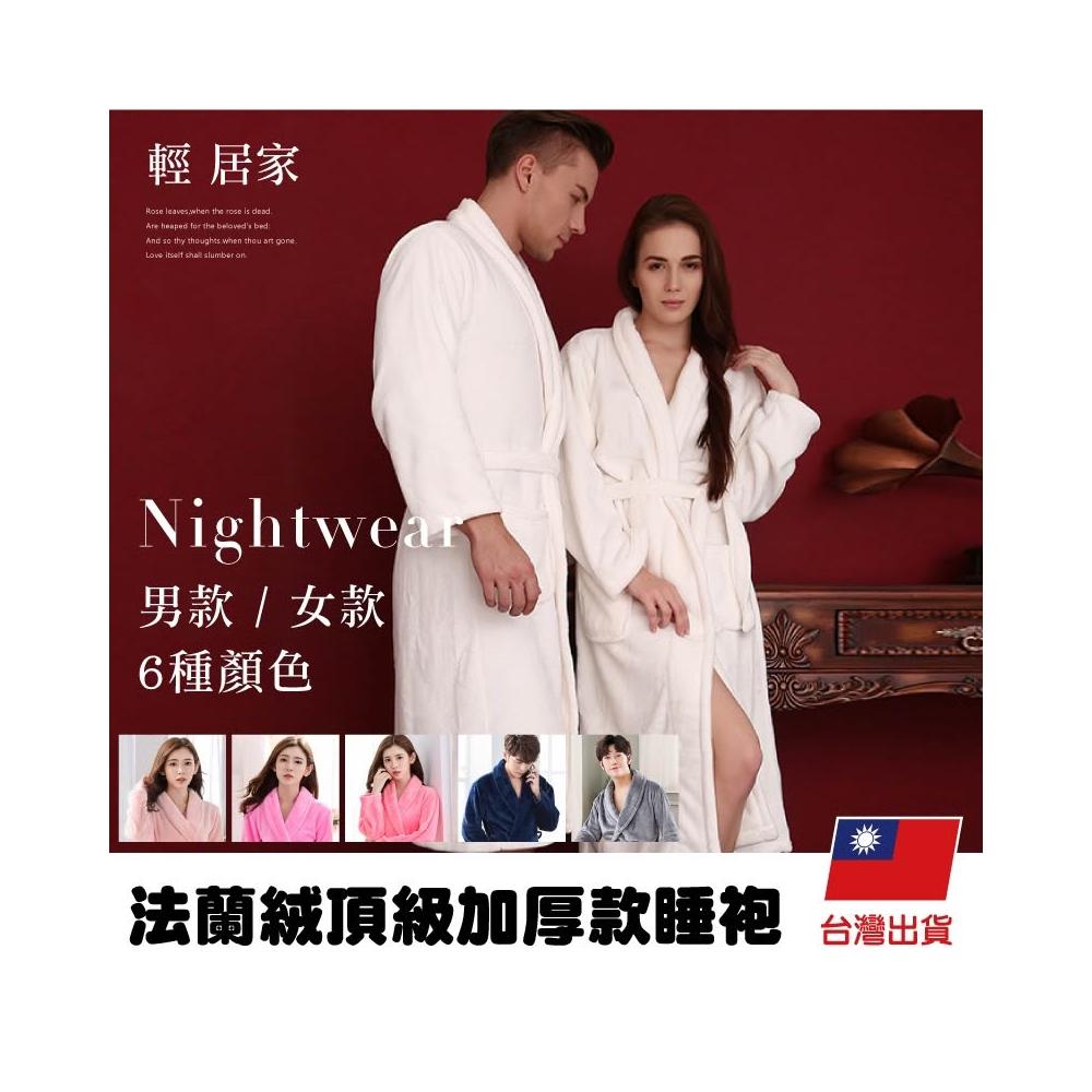 法蘭絨頂級加厚睡袍 台灣出貨 開立發票 多色可選 男女浴袍 浴衣 珊瑚絨睡袍 素色睡袍 情侶睡袍 保暖睡袍 -輕居家-C