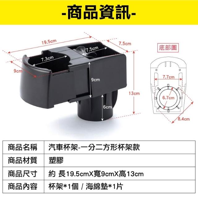 汽車杯架 -一分二方形杯架款 台灣出貨 開立發票 擴充杯架 牛奶盒杯架 飲料架 茶杯架 水杯座-輕居家8542