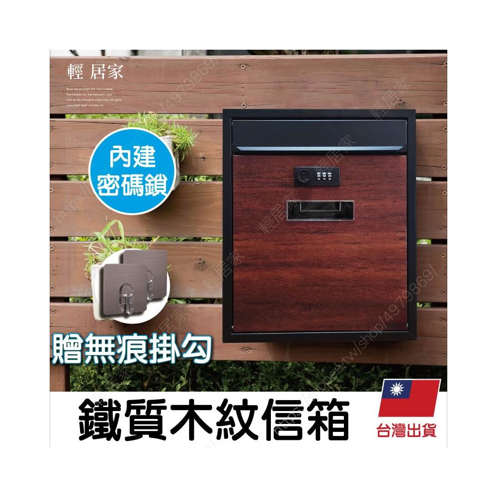 鐵質木紋信箱(贈無痕掛勾) 台灣出貨 開立發票 信箱 密碼鎖 信箱郵筒 信箱防水 密碼信箱-輕居家8685