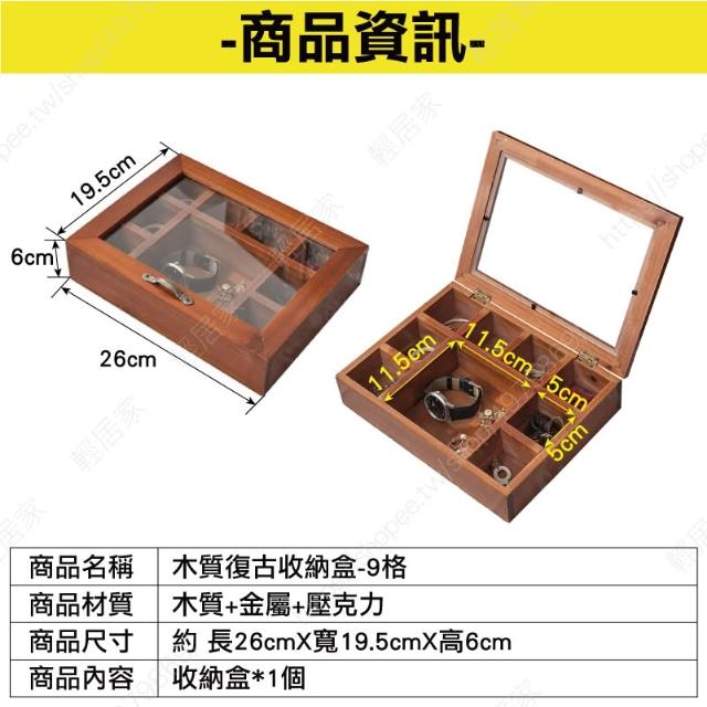 木質復古收納盒 台灣出貨 開立發票 飾品收納盒 首飾盒 配件盒 多格木盒 方格收納盒-輕居家8740