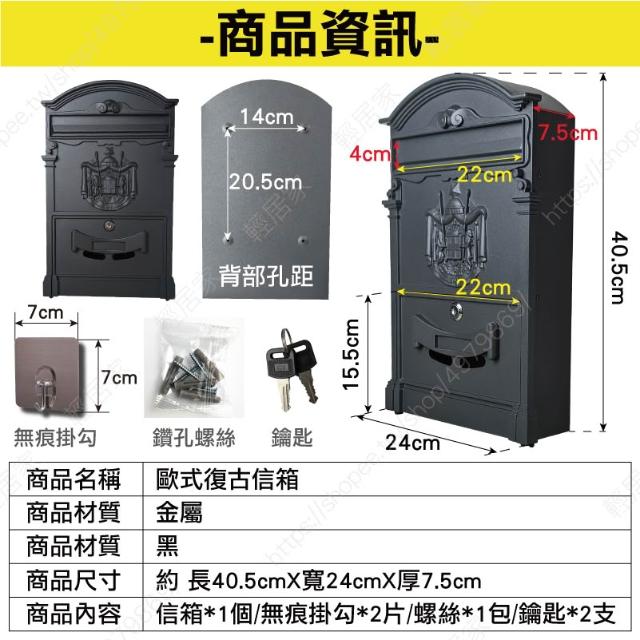 歐式復古信箱 台灣出貨 開立發票 信箱郵筒 郵箱 信箱門牌 郵筒 信箱鎖 密碼信箱 門牌信箱-輕居家8730