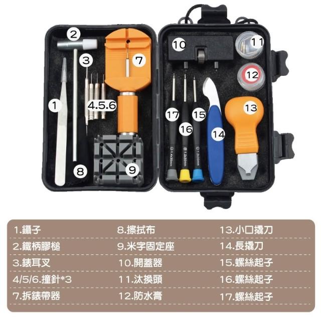 手錶維修工具-盒裝17件組 台灣出貨 開立發票 拆錶工具 修錶工具 拆錶帶工具 開錶工具-輕居家8579