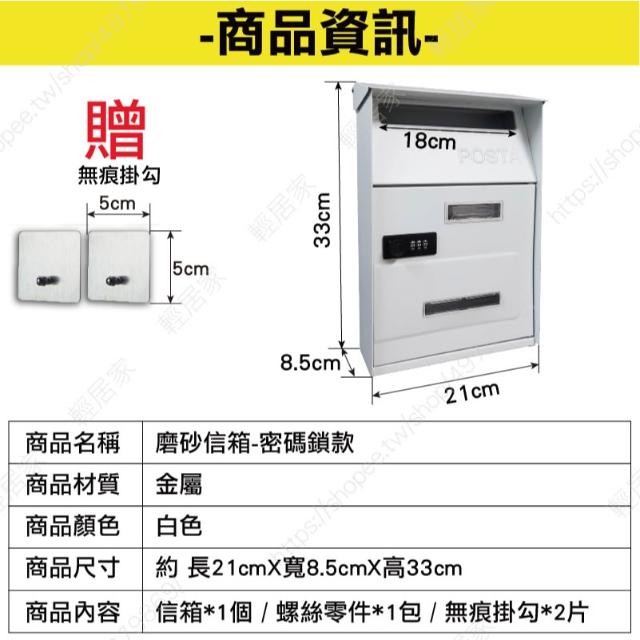 磨砂信箱(贈無痕掛勾) 台灣出貨 開立發票 郵件箱 信報箱 信箱郵筒 郵箱 家用信箱 密碼信箱 簡易信箱-輕居家8705