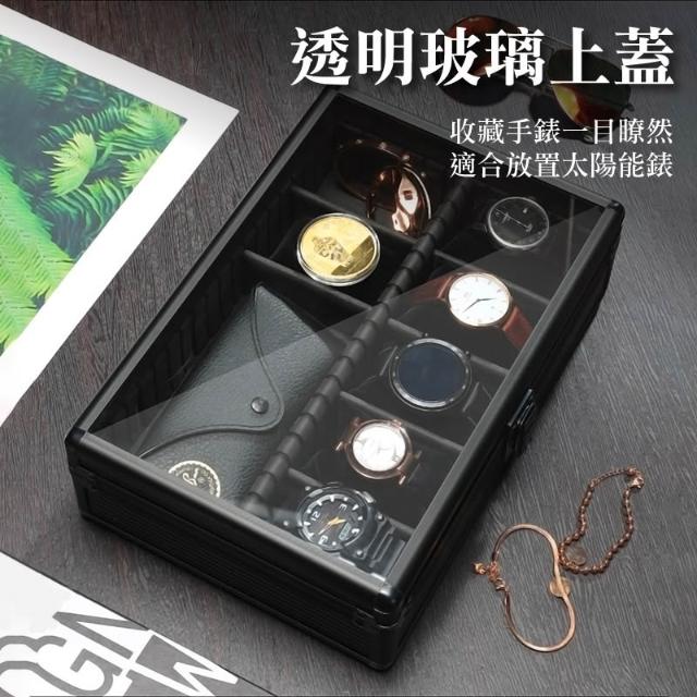 十格鋁合金錶盒-黑 台灣出貨 開立發票 手錶收納盒 手錶盒 手錶收藏盒 手錶架 展示盒-輕居家8538