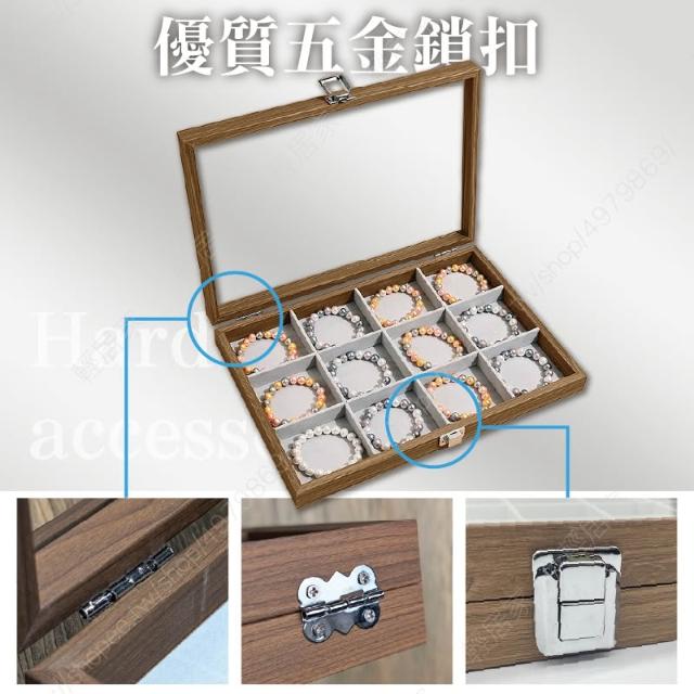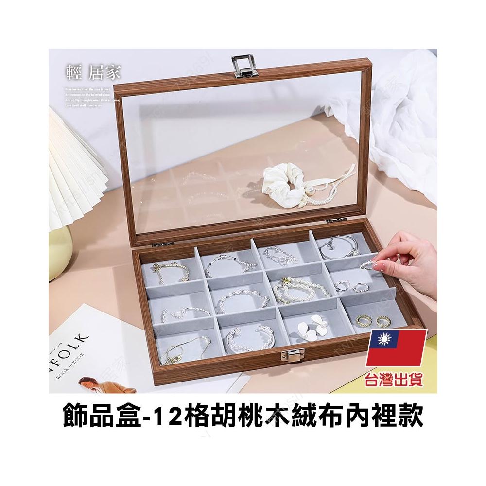 飾品盒-12格胡桃木絨布內裡款 台灣出貨 開立發票 飾品收納盒 首飾盒 飾品盒 珠寶盒-輕居家8801