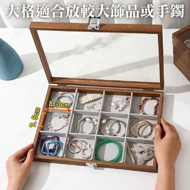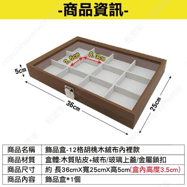 飾品盒-12格胡桃木絨布內裡款 台灣出貨 開立發票 飾品收納盒 首飾盒 飾品盒 珠寶盒-輕居家8801