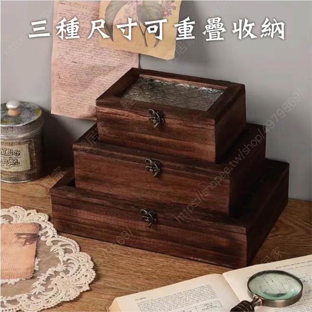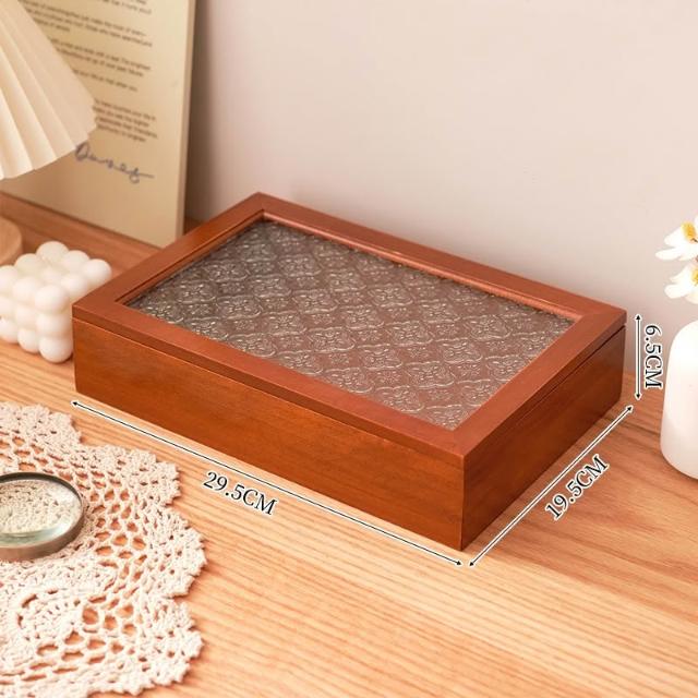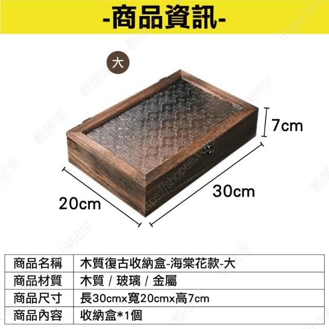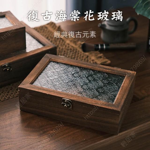 木質復古收納盒 -海棠花款 台灣出貨 開立發票 海棠花玻璃珠寶盒 翻蓋木質收納盒 玻璃首飾盒-輕居家-C