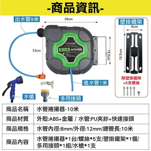 水管捲揚器 台灣出貨 開立發票 10米/15米/20米 自動水管車 自動伸縮捲管器 水管捲管器-輕居家-C