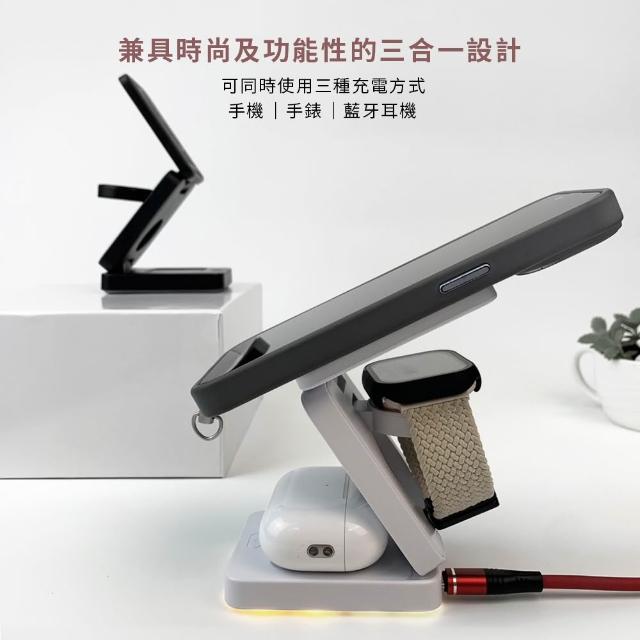 Lami Fans3in1折疊式 磁吸無線充電座22W(MCK科技 汽車充電器 手機充電 蘋果手錶 藍牙耳機 氣氛小夜燈 type-c接孔
