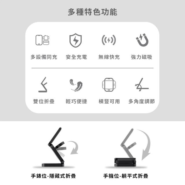 Lami Fans3in1折疊式 磁吸無線充電座22W(MCK科技 汽車充電器 手機充電 蘋果手錶 藍牙耳機 氣氛小夜燈 type-c接孔