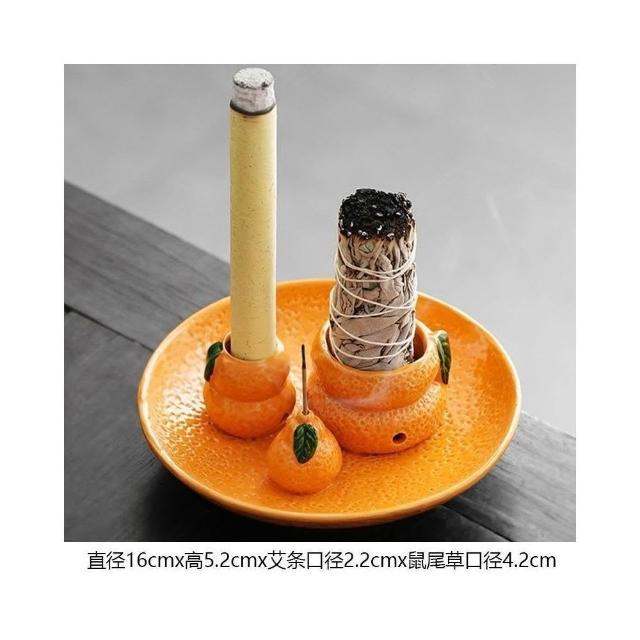 橘色 陶瓷艾草條艾棒底座 燃燒托盤 香熏托盤 家用