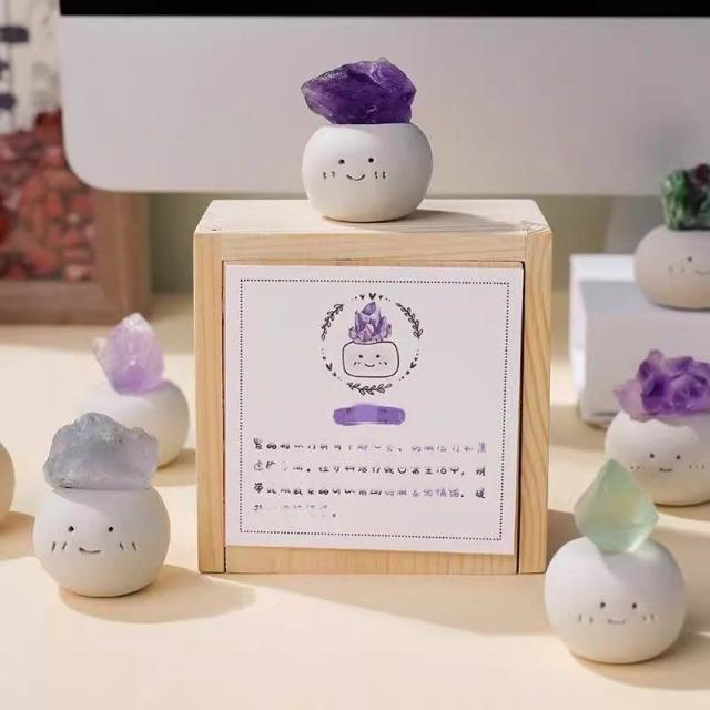 天然水晶原石礦石小豆丁可愛書桌擺件標本紫黃水晶招米小陪伴禮物