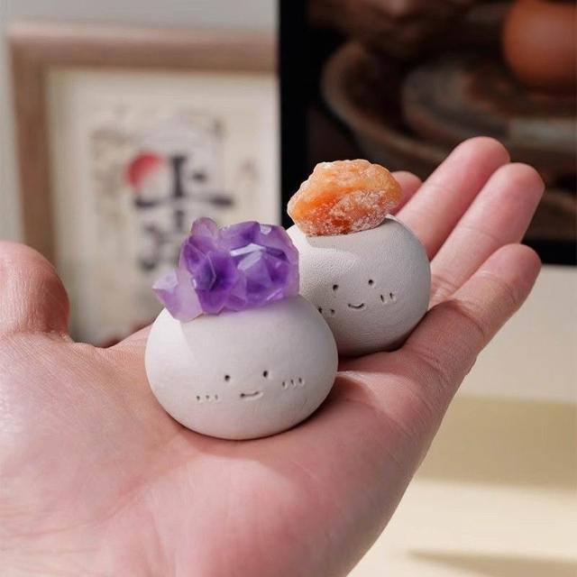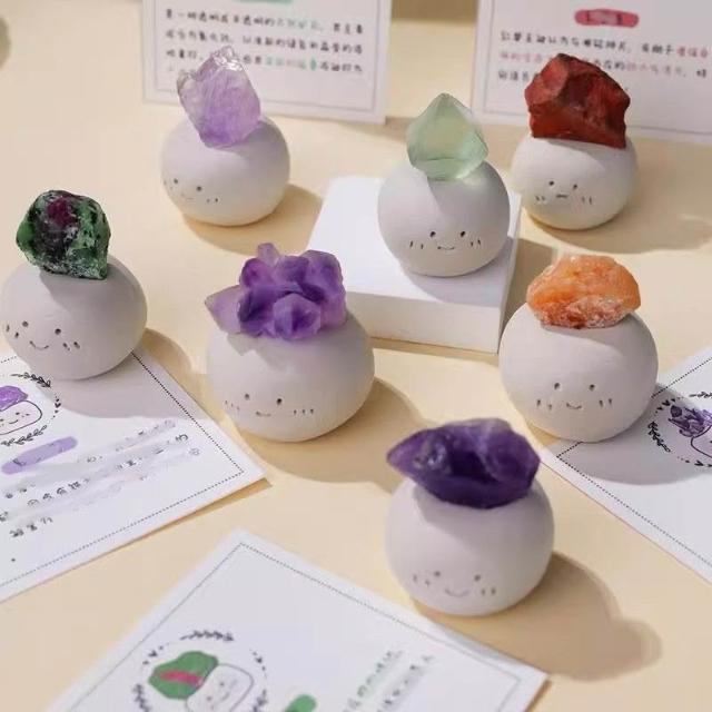 天然水晶原石礦石小豆丁可愛書桌擺件標本紫黃水晶招米小陪伴禮物