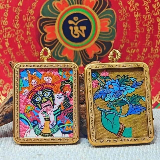 西藏純手繪雙面唐卡 唐卡吊墜 礦物顔料 扎基拉姆 黃財神 黑財神 綠度母 藥師佛 本命佛