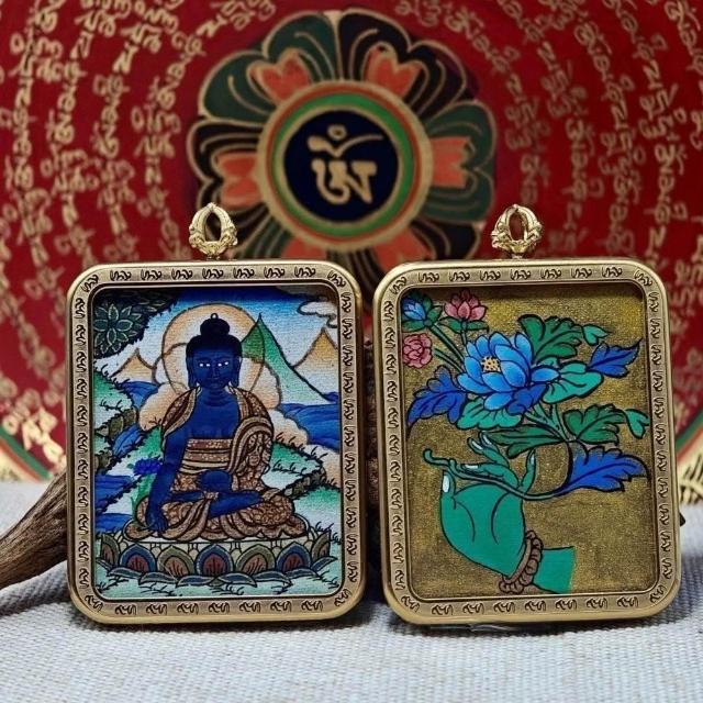 西藏純手繪雙面唐卡 唐卡吊墜 礦物顔料 扎基拉姆 黃財神 黑財神 綠度母 藥師佛 本命佛