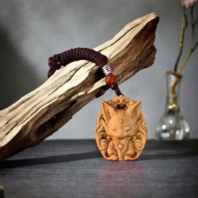 印度老山檀香掛件 九尾狐鳳九平安雕刻 木雕手把 項鏈吊墜 招財